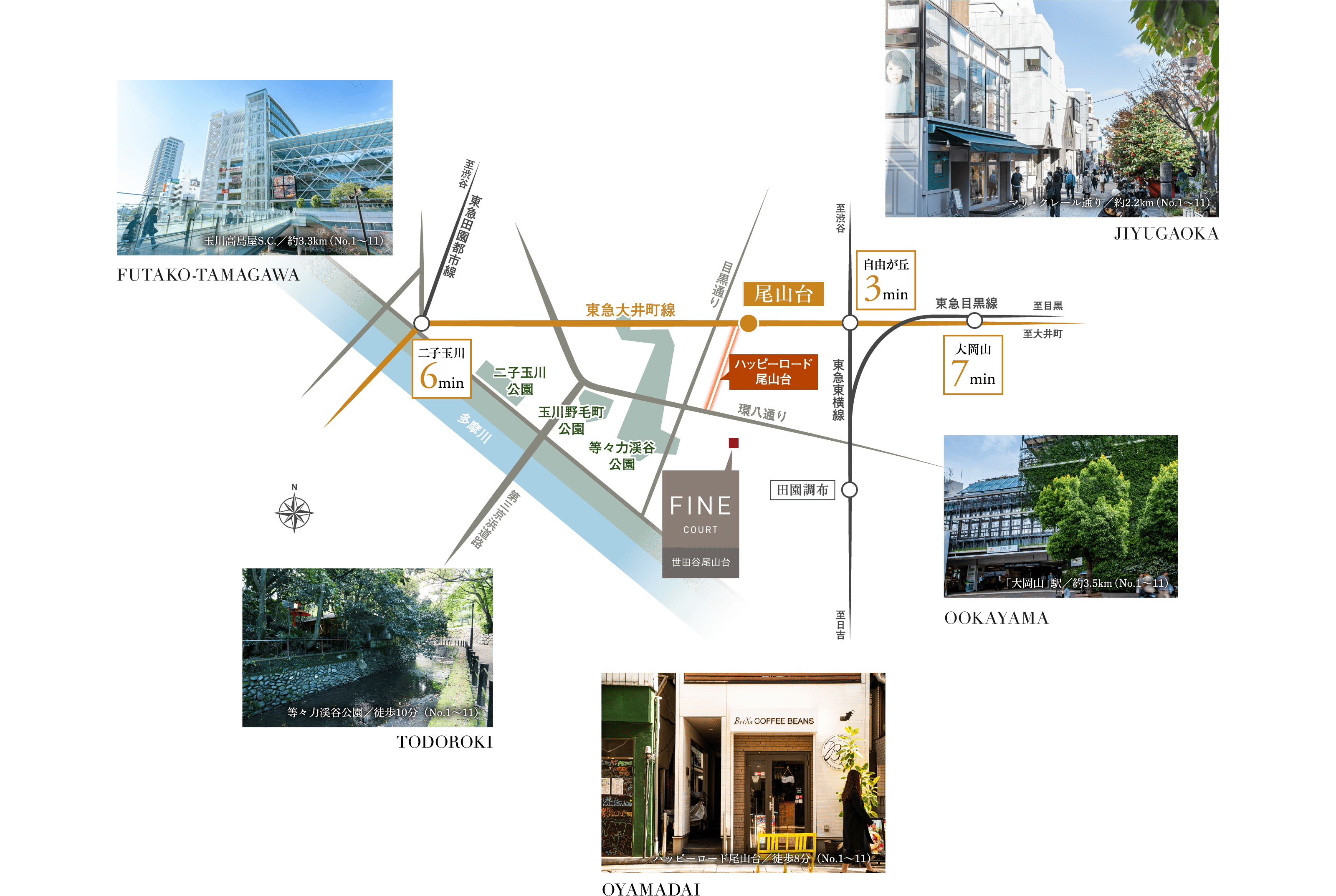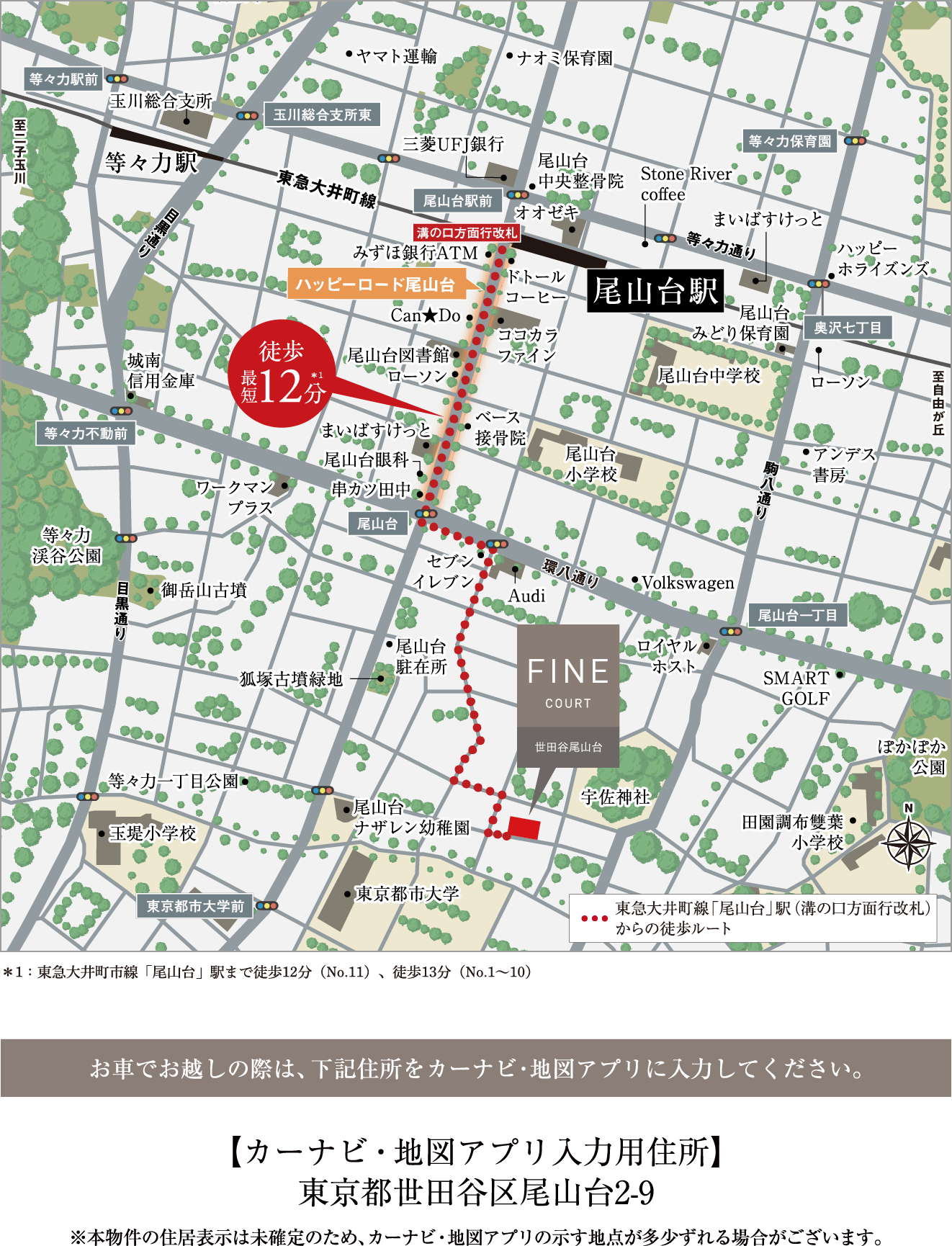 *1:東急大井町線「尾山台」駅徒歩12分(No.11)、徒歩13分(No.1〜10)