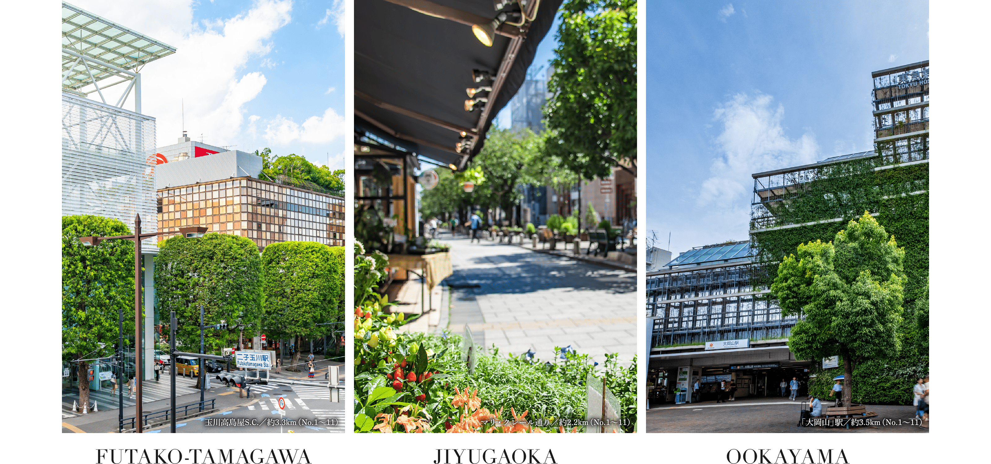 *2:東急大井町線利用/「自由が丘」駅へ3分(4分)、「二子玉川」駅へ6分(5分)、「大岡山」駅へ7分(7分)。掲載の所要時間は平日・通勤時(7:30~9:00)の目的駅へ到着する最も本数の多い電車のものです。( )内は平日・日中時(11:00〜16:00)のものです。乗換え、待ち時間を含みます。時間帯等により異なります。(2025年11月現在)