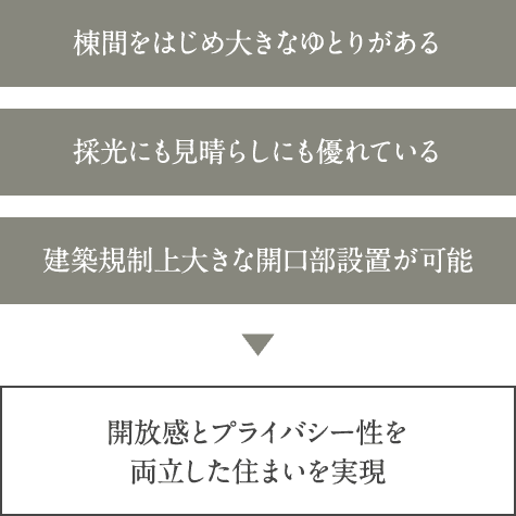 眺望と開放感に優れた立地特性を謳歌するためのプランニング。