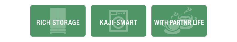 広いリビング・ダイニング・キッチンと広い庭。大きな空と豊かな緑と共に過ごす時間をより豊かにするために、家事のしやすさや収納の充実にこだわりました。ペットと快適に過ごすアイデアなど、様々な提案を込めたプランをご用意しました。