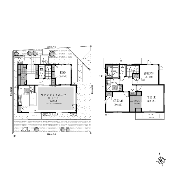 全戸敷地面積120㎡以上、広い庭とLDK全邸17畳以上の広々したすまい