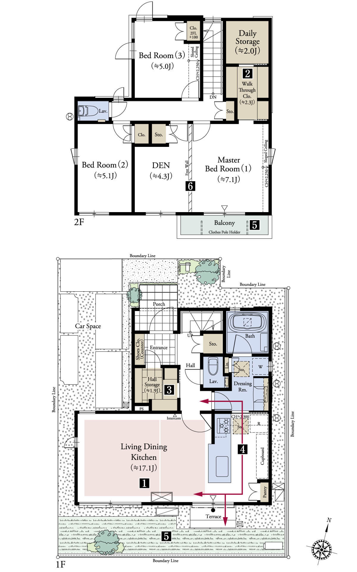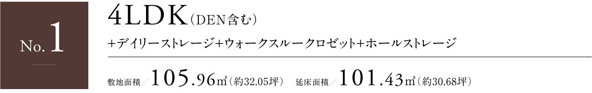 (DEN含む)+デイリーストレージ +ウォークスルークロゼット +ホールストレージ