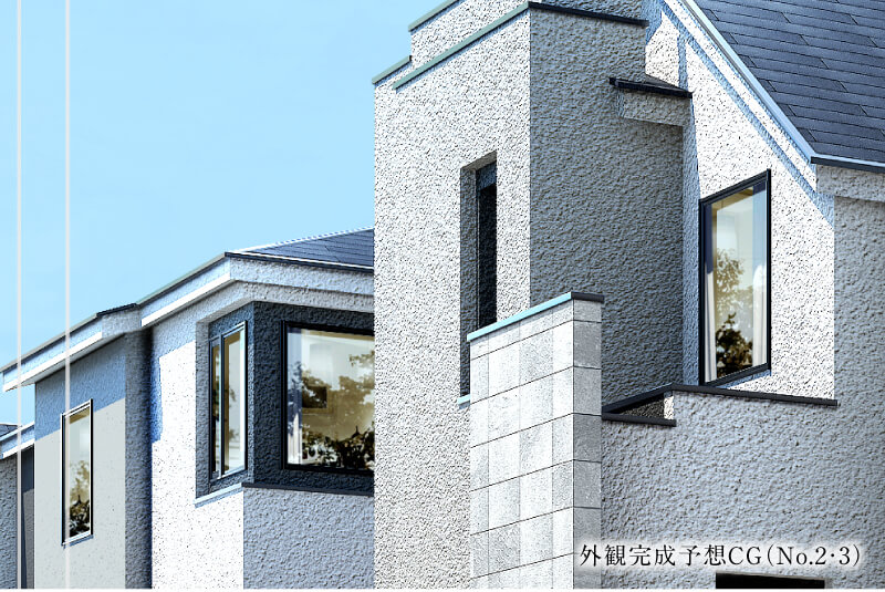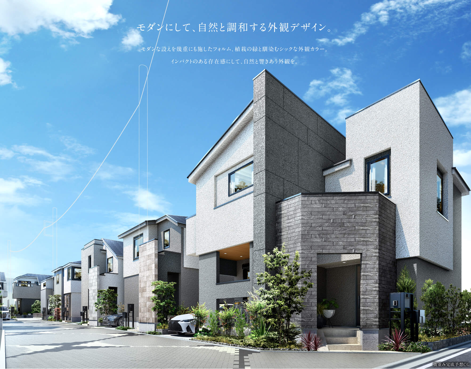 スクエアな面を際出たせインパクトのある存在感を追求した全10邸。浮遊するようなボックスデザインは、フォルムに力強いアクセントを加えます。