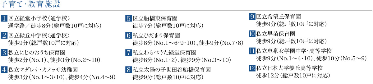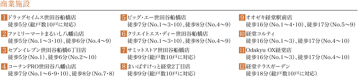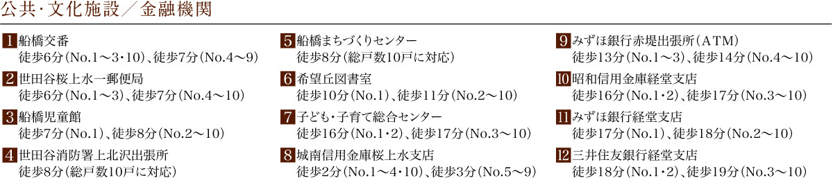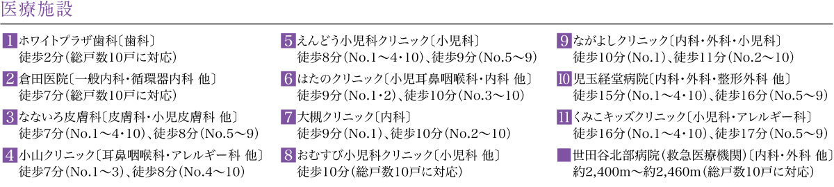 徒歩3分(No.1〜3・10)、徒歩4分(No.4〜9)
