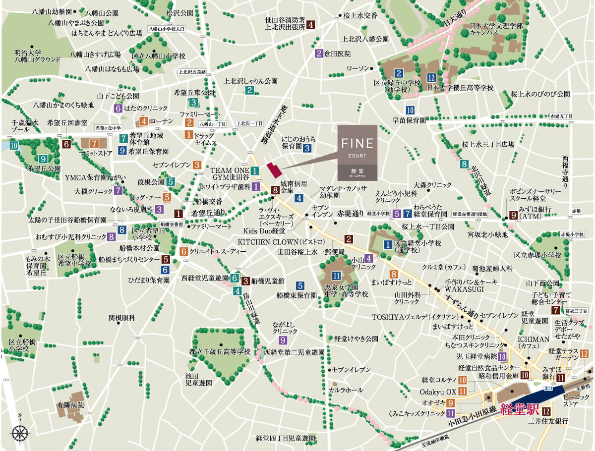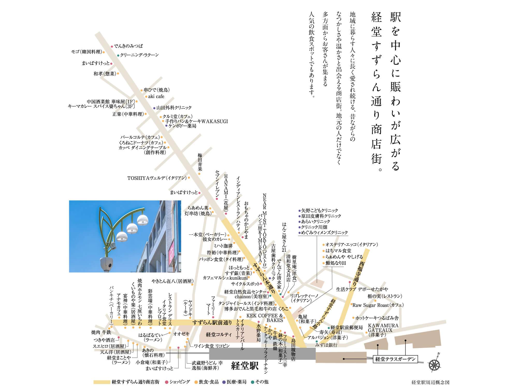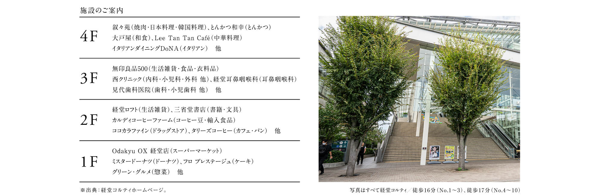 大型ショッピングセンターが隣接する「経堂」駅を中心に