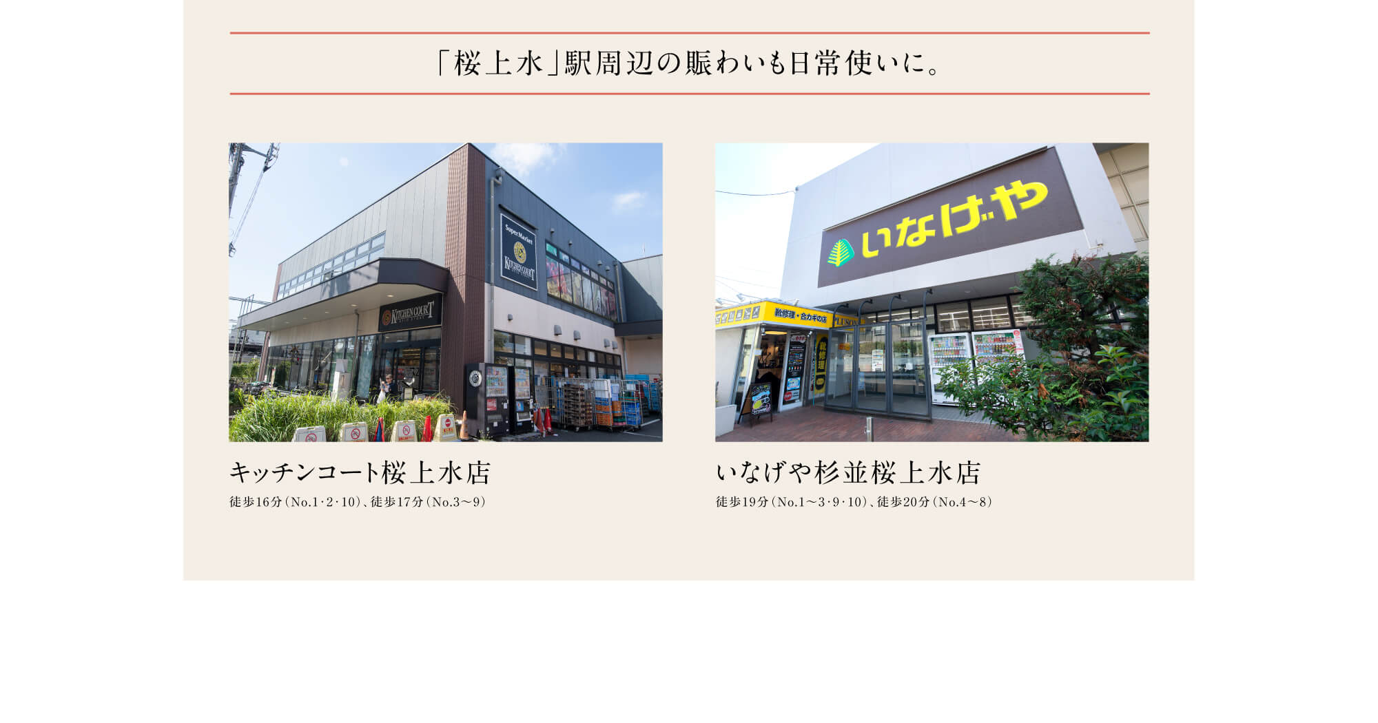 徒歩15分(No.1〜4・10)、徒歩16分(No.5〜9)