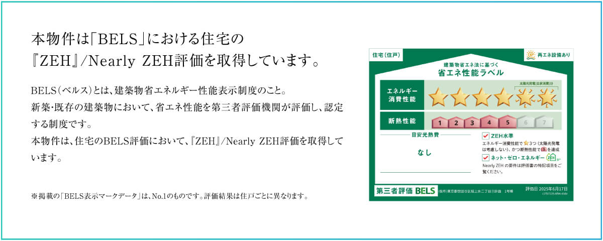 本物件は、経済産業省が定めた『ZEH』 / Nearly ZEHの基準を満たした住宅です。
