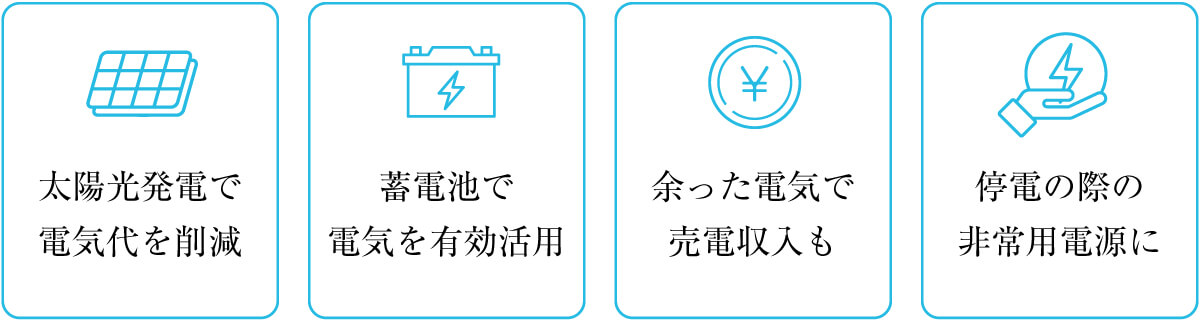 太陽光発電+蓄電池で電気を有効活用。エネルギーの自給自足を目指し、環境にも配慮。