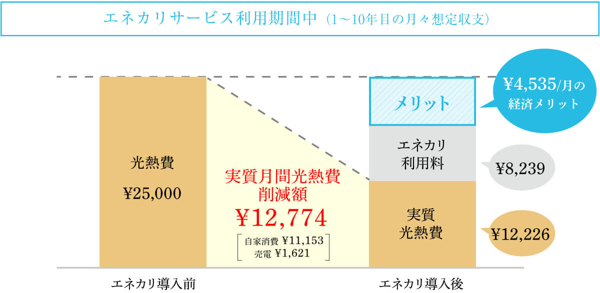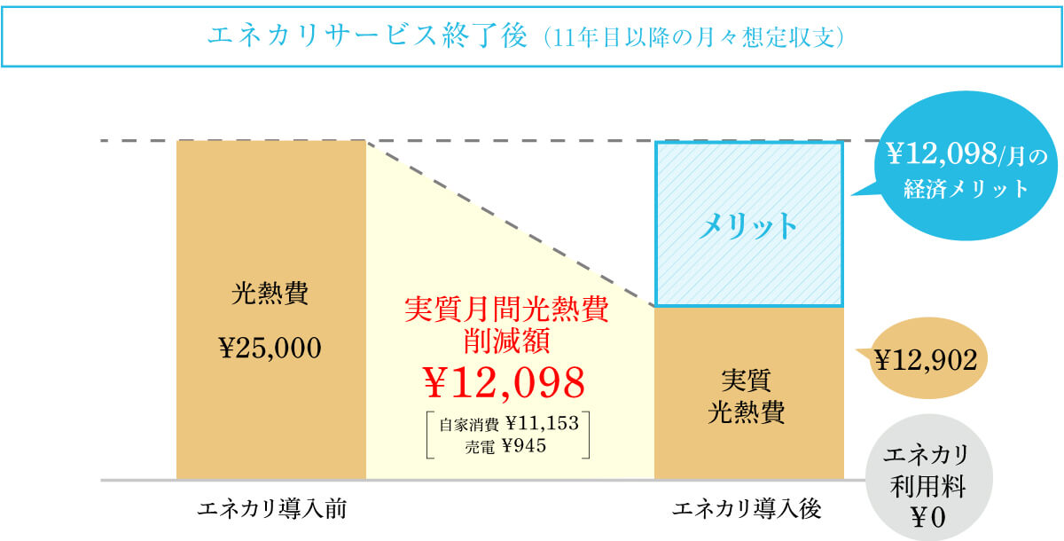 10年間の利用期間満了後、太陽光パネルなどの機器を無償で譲渡。11年目以降は利用料が一切かからないため、太陽光発電による光熱費削減や売電メリットをすべて享受できます(*7)。