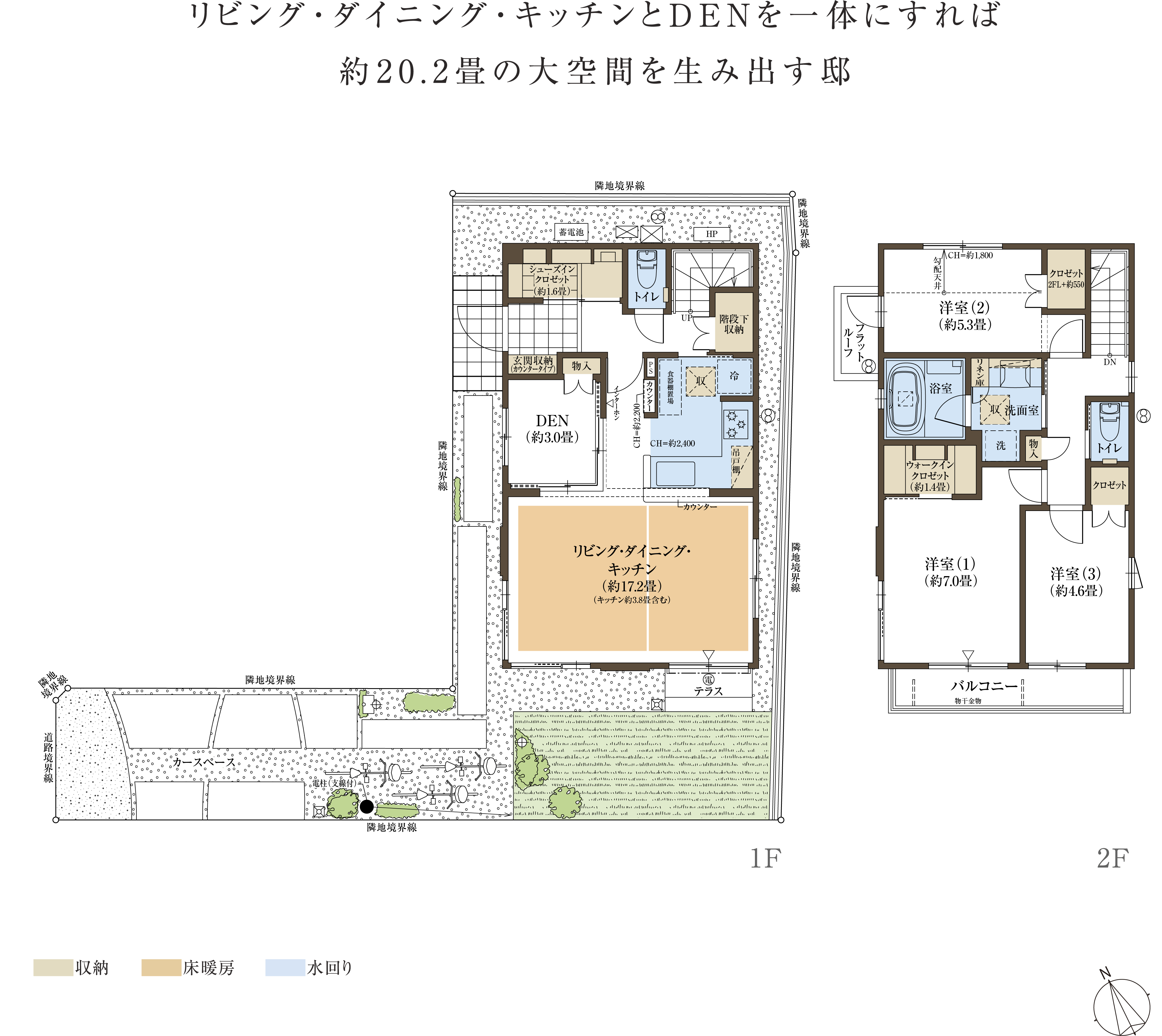 第一種低層住居専用地域、建ぺい率40%・容積率80%が生み出す、ゆとりある住まい。