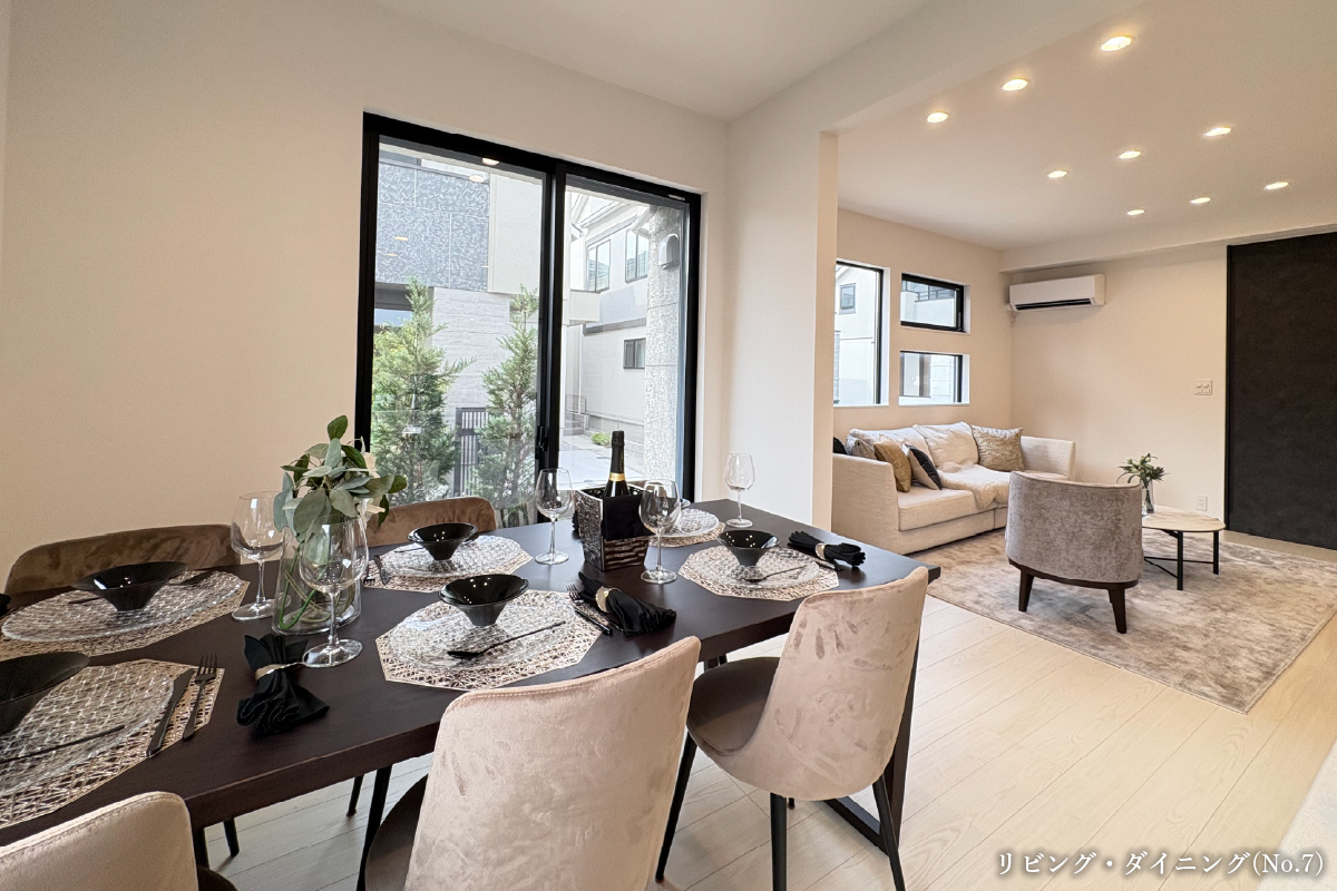 モデルハウス写真 prev next ※掲載の写真はモデルハウス(No.5~7)を撮影したものです。(2025年11月撮影)家具・調度品等は販売価格には含まれません。予めご了承ください。また、設備・仕様の色や形状は、住戸により異なります。詳しくは担当者にお問い合せください。