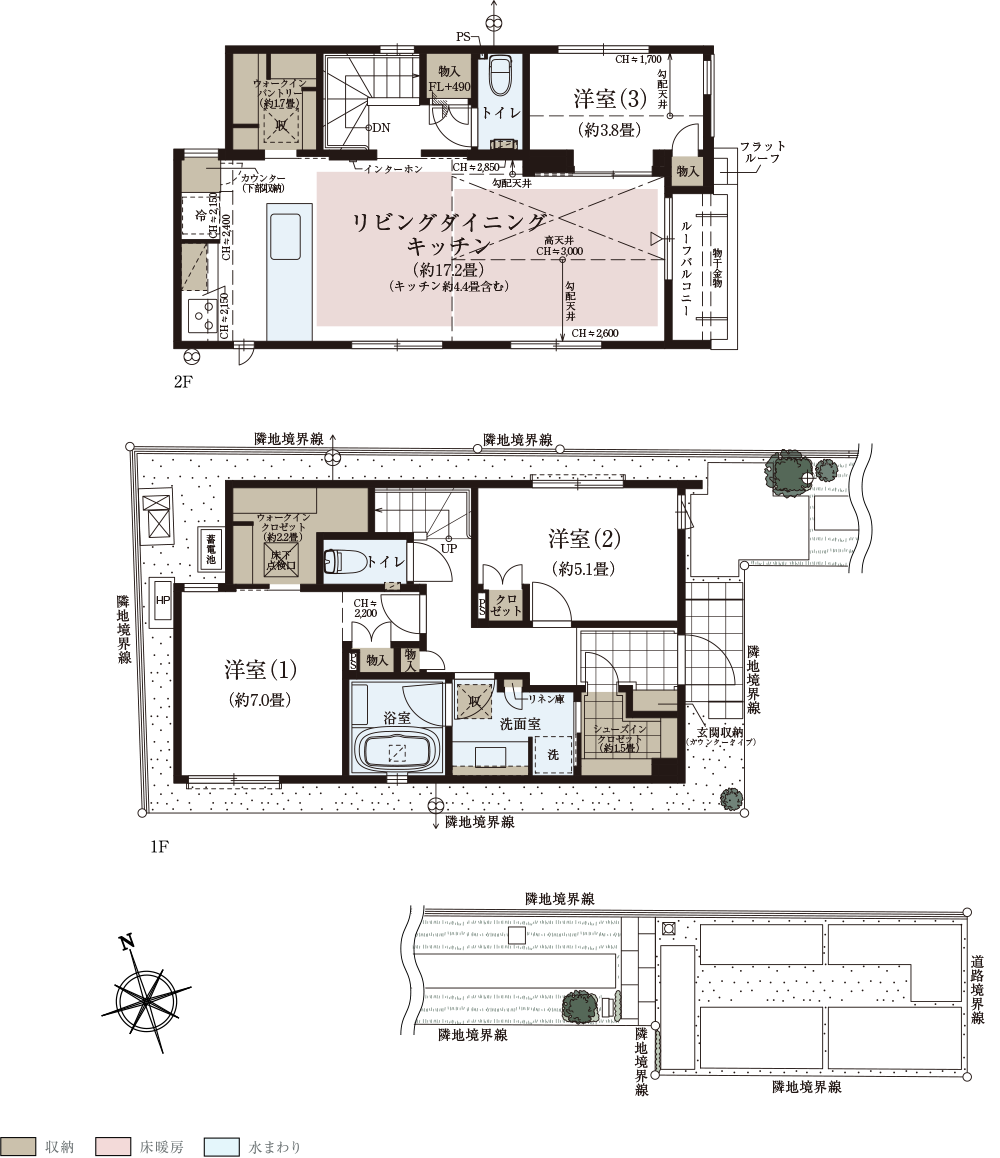 ※延床面積にはルーフバルコニーの一部1.86㎡を含みます。 ※施工等の関係で変更になる場合がございます。詳しくは施工図等でご確認ください。※外構の石、タイル等はおおよその施工範囲を示したものです。※坪数と畳数は約表記です。 ※SIC=シューズインクロゼット ※WIC=ウォークインクロゼット ※WIP=ウォークインパントリー