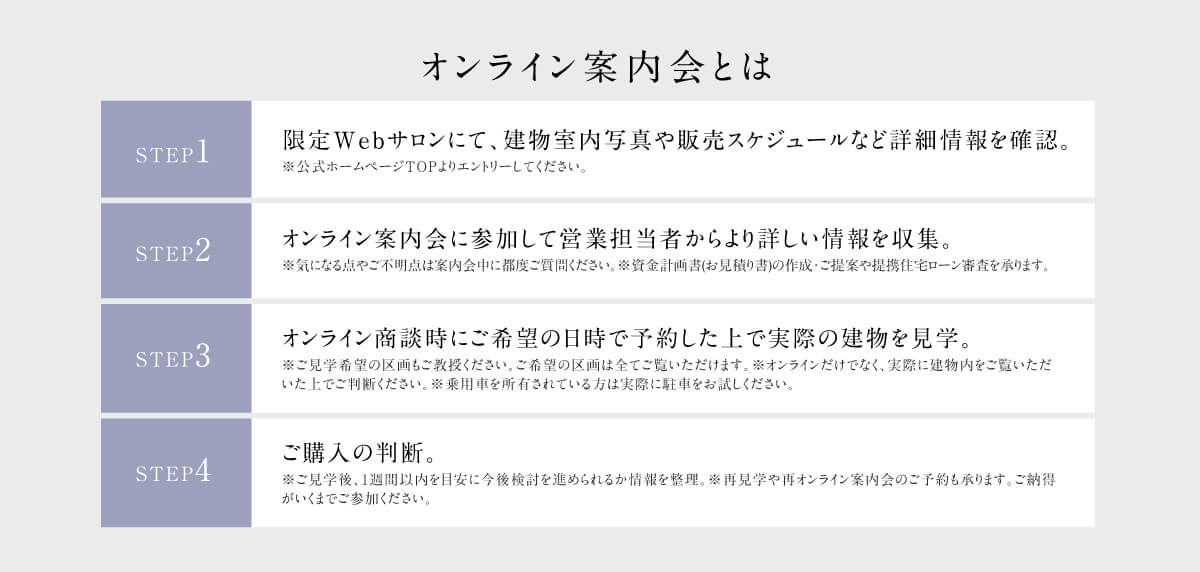 - 【先着順申込受付中!1号棟・2号棟】詳細はオンライン案内会でご案内します。