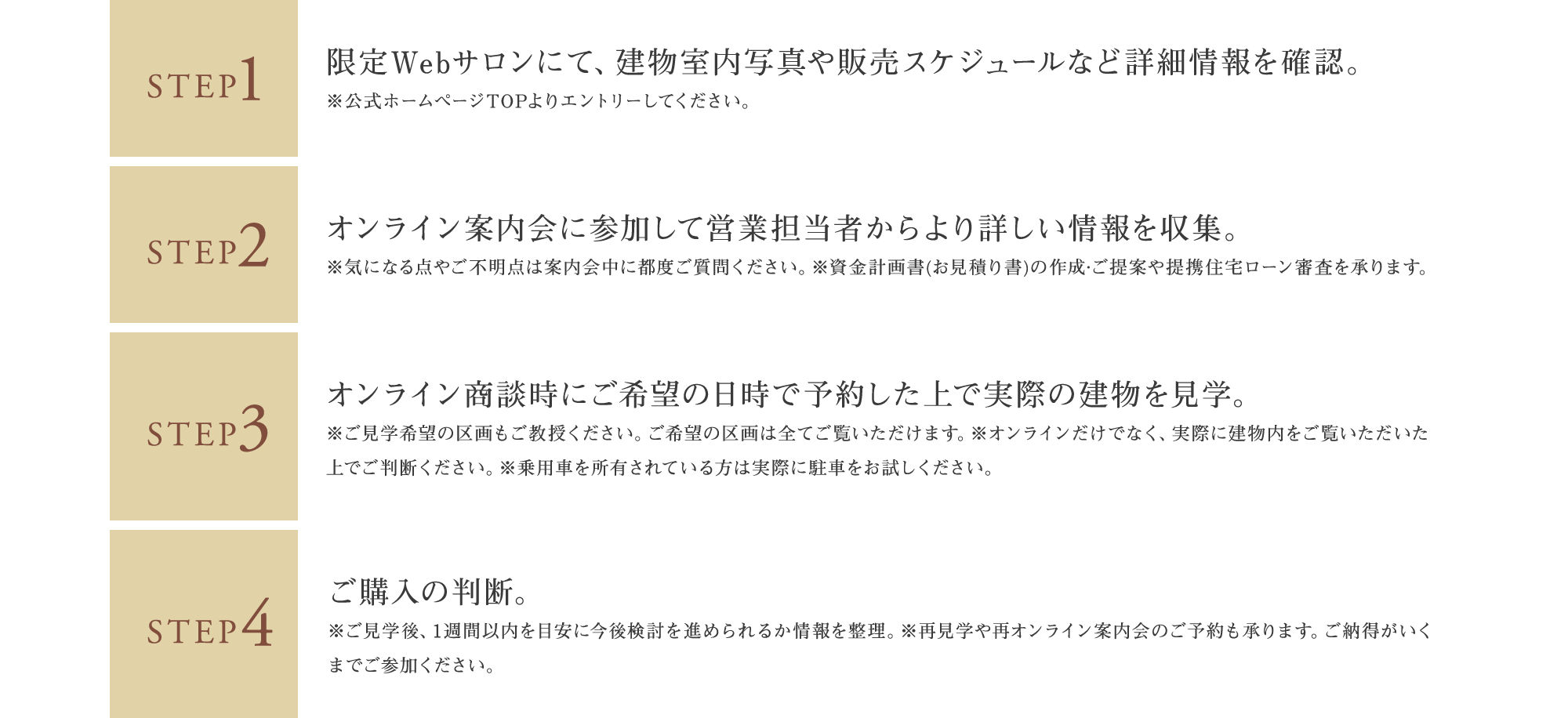 - 先着申込受付中!いよいよ最終1邸!建物見学についてはオンライン案内会でお知らせします。