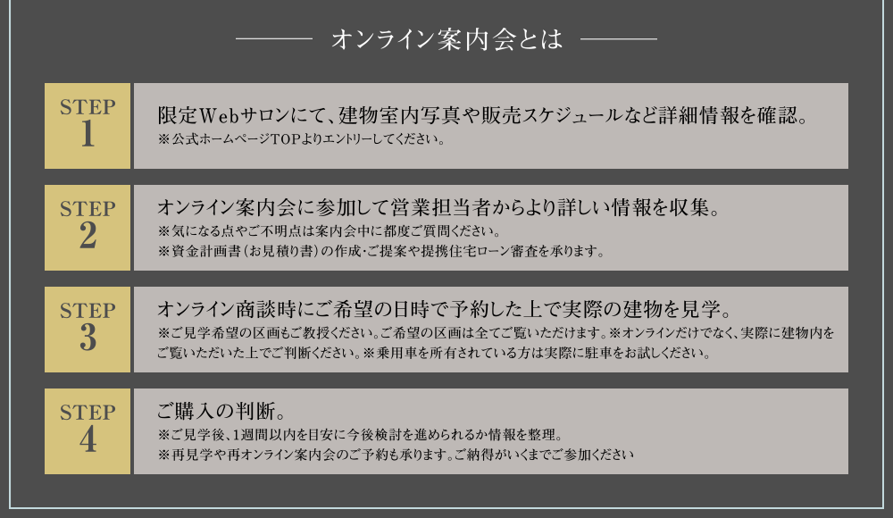 - オンライン案内会開催中!建物見学会についてもご説明します。