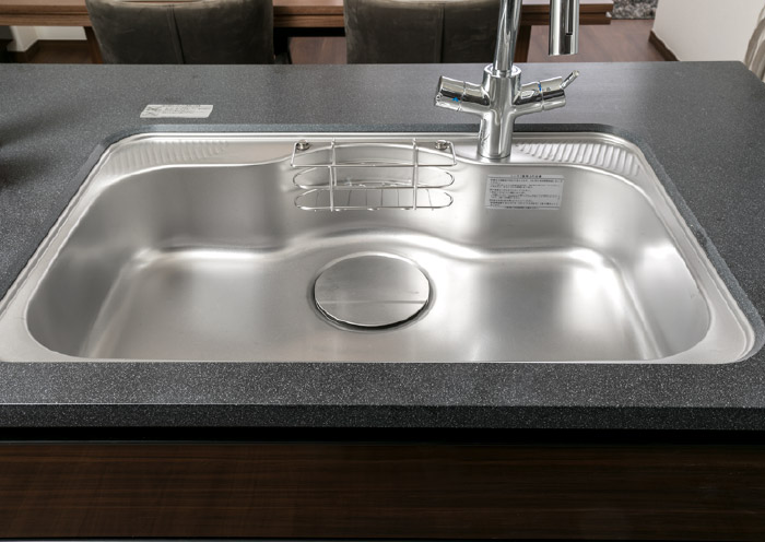 水道水や食器がシンクにあたる音の響きを低減する静音シンクを採用。大型の鍋なども洗いやすい幅広のワイドシンクです。小物置き・まな板立ても標準装備。