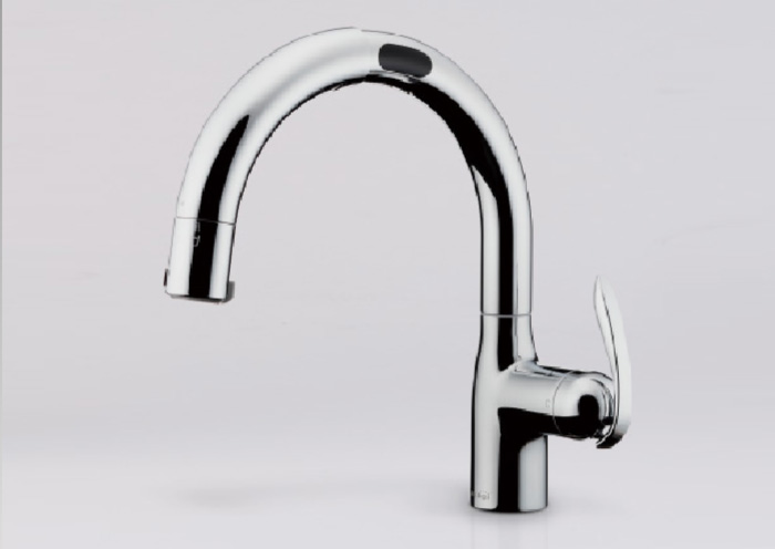 デザイン性に優れ、大きなフライパンや鍋もストレスなく洗えるグースネックタイプ水栓を採用しました。