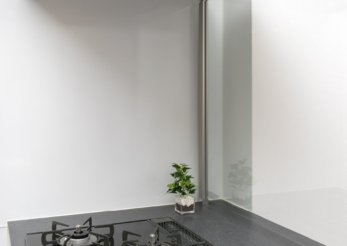 油などを簡単に拭き取ることができるホーロー製のキッチンパネル。マグネットで調理器具などの設置も可能です。