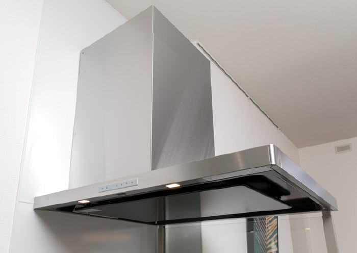 汚れやすい箇所にお手入れしやすいホーローを使用したレンジフード。煙を吸い込みやすいホーロー整流板付。