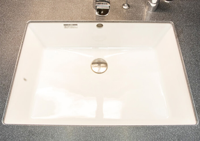 洗面化粧台のカウンタートップには、高級感のある質感が魅力のデュポンモデストを採用。汚れが染み込みにくく、お手入れが簡単です。