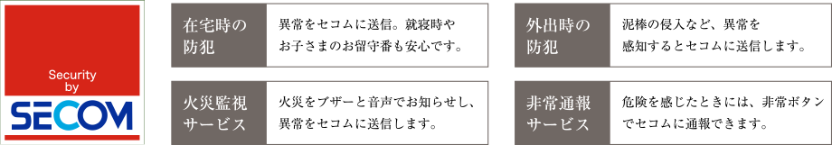 ※ホームセキュリティを利用するためには、別途セコム(株)との契約が必要です。契約プランによって月額警備料金や対応内容が異なります。