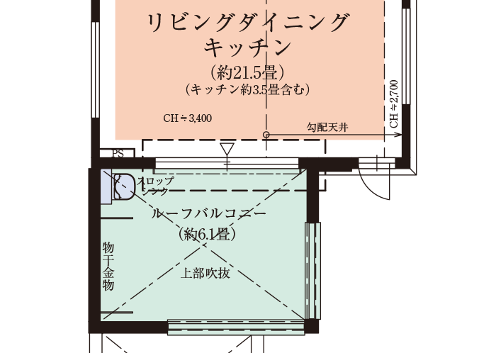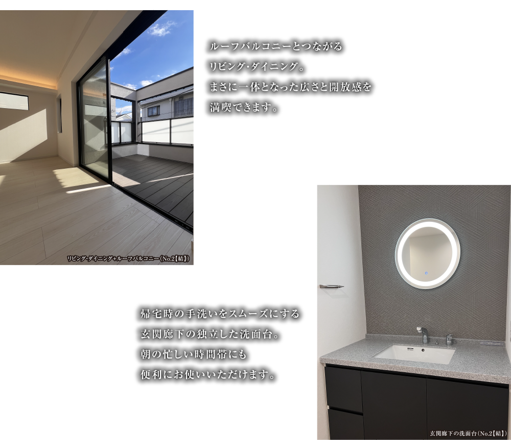 2階南側には、アウトドアリビングとしても活用できる約6.1畳のルーフバルコニーを設置。さらにルーフバルコニーとつながるLDKは、約21.5畳の広さを確保。まさに一体となった広さと開放感を享受できます。