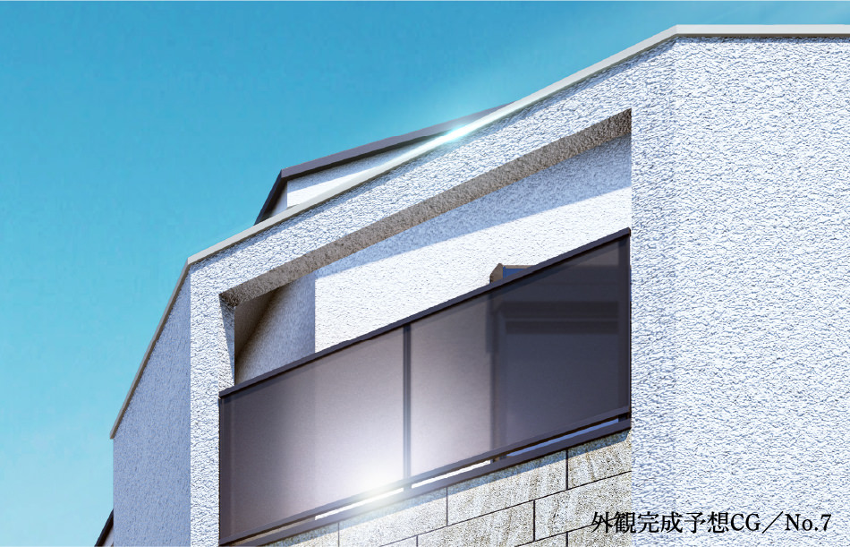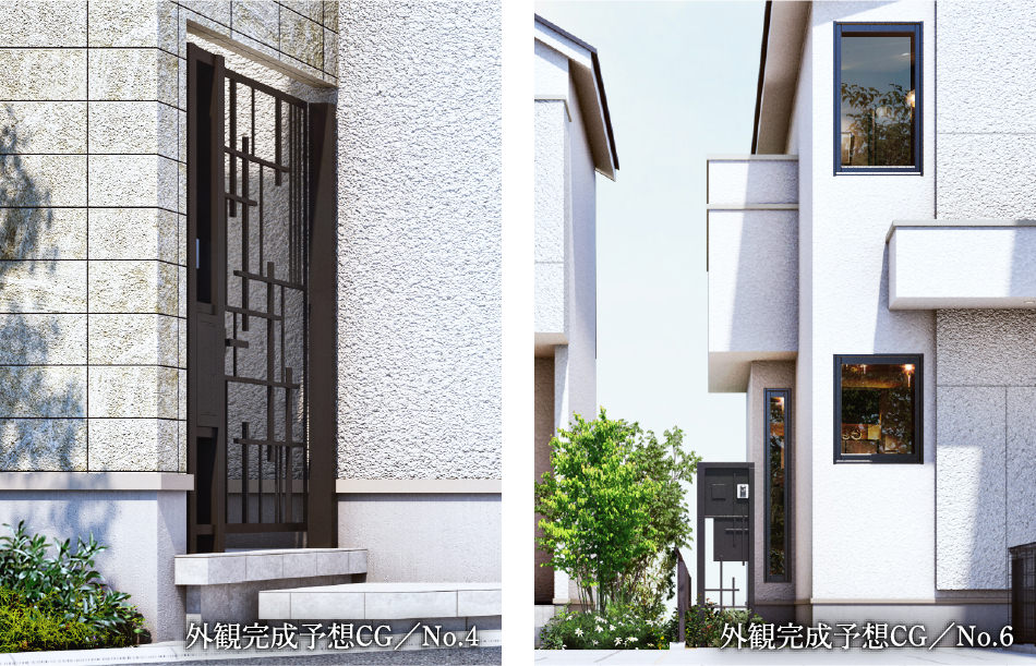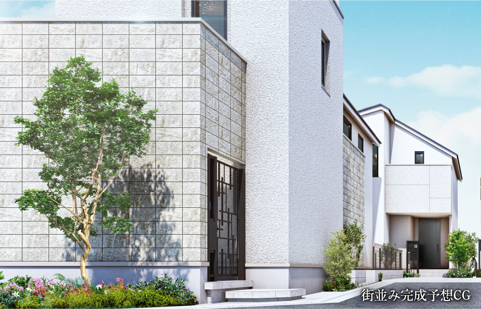 ※掲載の完成予想CGは、設計図を基に作成したもので、形状・色等は実際とは異なります。なお、外観形状の細部、設備機器等は表現しておりません。このCGで表現されている植栽は竣工から初期の育成期間を経た状態のものを想定して描いており、竣工時は植物の生育を見込んで必要な間隔をとって植えております。家具・調度品等は販売価格には含まれません。予めご了承ください。