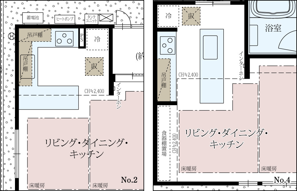 ※コの字型キッチン:No.2に採用 ※セパレートアイランドキッチン:No.4・7に採用