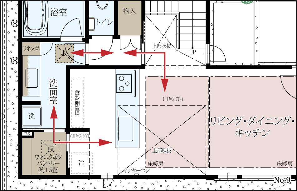 ※2WAY動線WIC:No.5に採用 ※2WAY動線WIP:No.9に採用