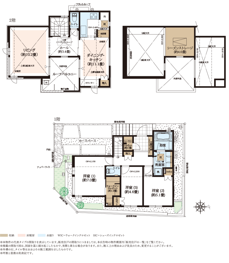 ※DEN=書斎、WIC=ウォークインクロゼット、WTC=ウォークスルークロゼット、SIC=シューズインクロゼット、N=納戸