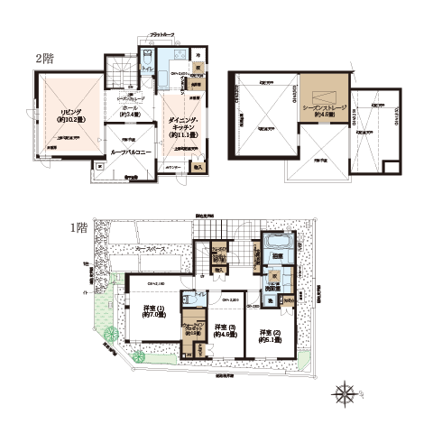 ※外構の石、タイル等はおおよその施工範囲を示したものです。家具・調度品等は販売価格に含まれません。