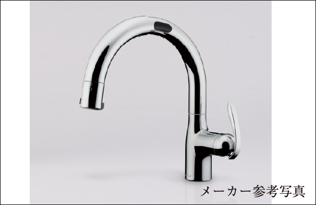 デザイン性に優れたグースネックタイプ。水栓に触れることなく使用できるため、汚れにくく清潔です。