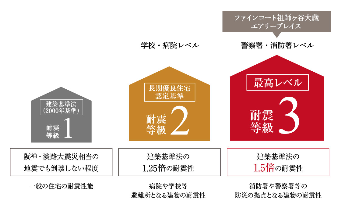 ※「住宅の品質確保の促進等に関する法律(品確法)」に基づく住宅性能表示制度における耐震等級3を取得。