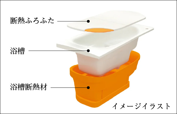 浴槽を断熱材で包み込んだ魔法びんのような構造で、お湯の温かさを保ちます。