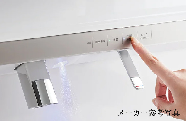 ボタンを押すと「きれい除菌水」がふきかけられ、歯ブラシや排水口の汚れ・菌を抑えます。