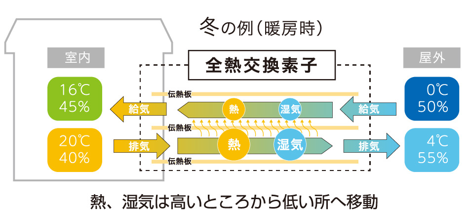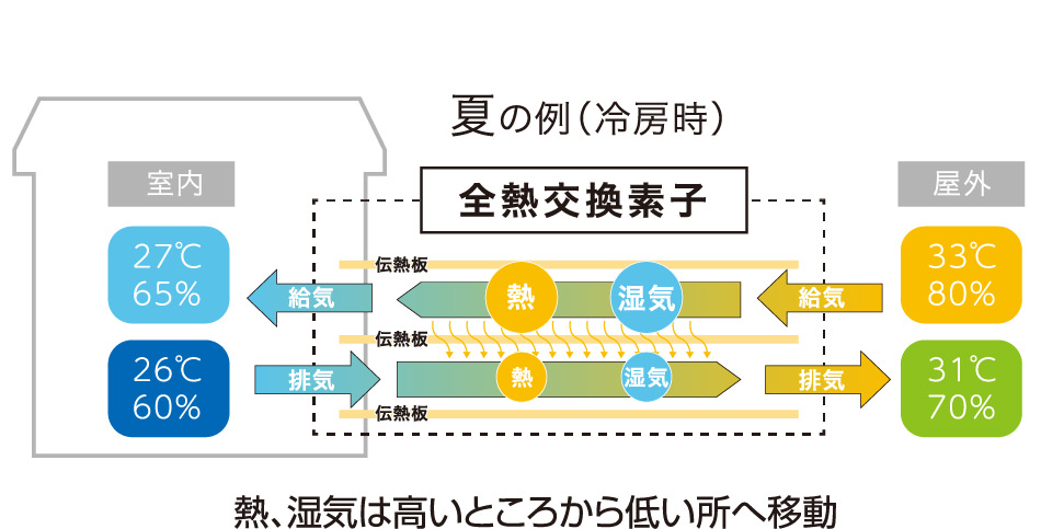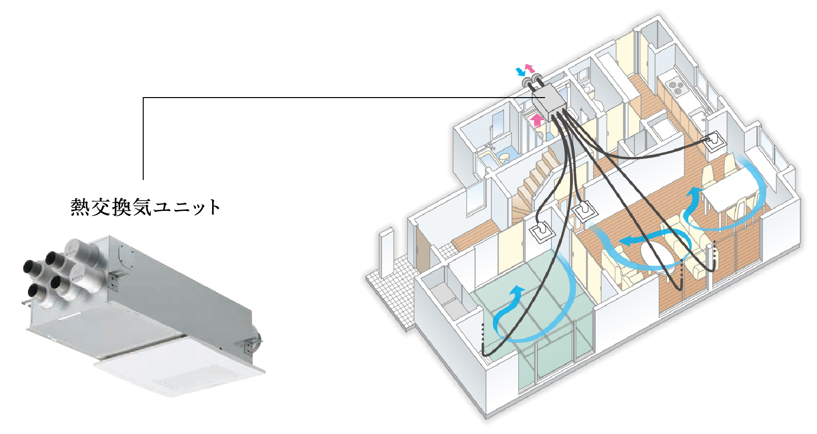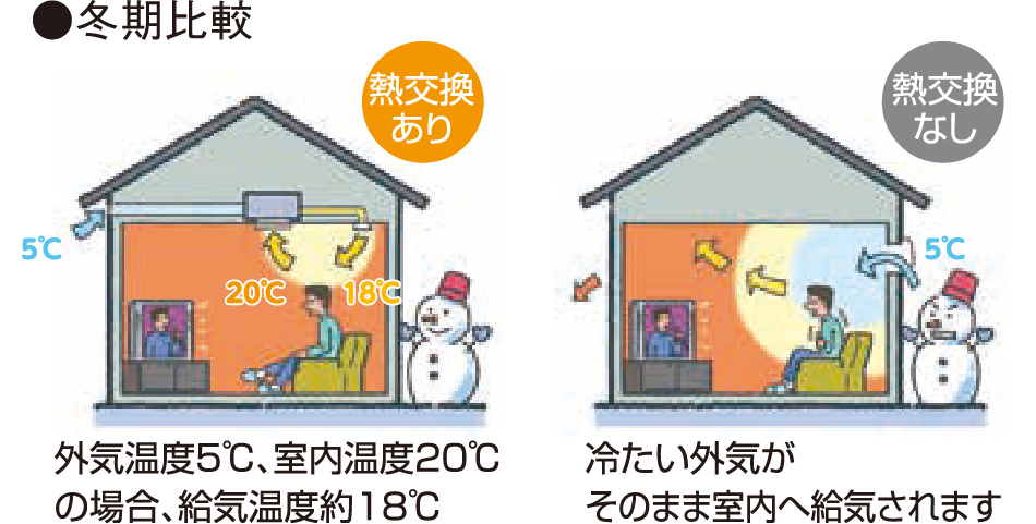 熱交換気なので冷暖房時の熱ロスを抑制します。