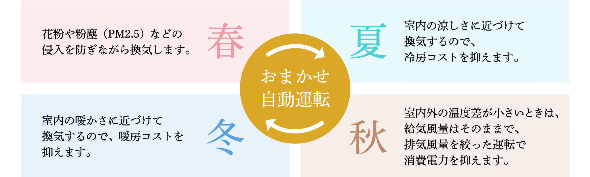 *室内外の温度差により、給排気量を白動調整します。(室内の温度·温度は制御しません)