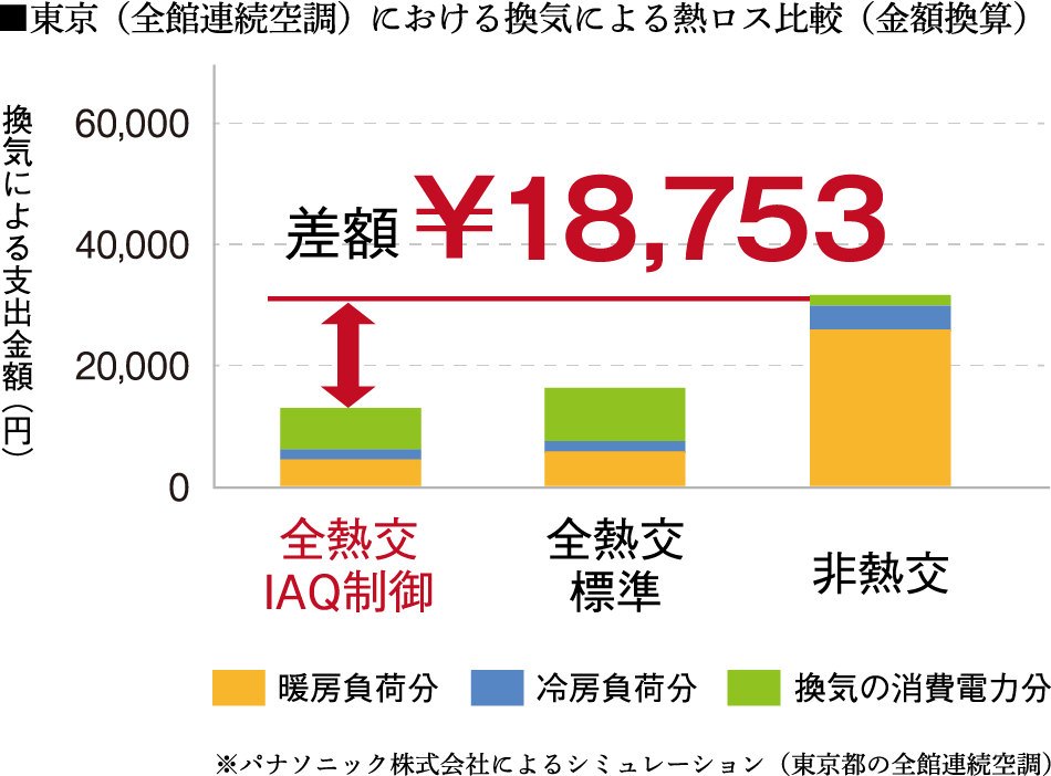 熱交換気なので熱ロスが少なく年間の冷暖房コストを低減します。