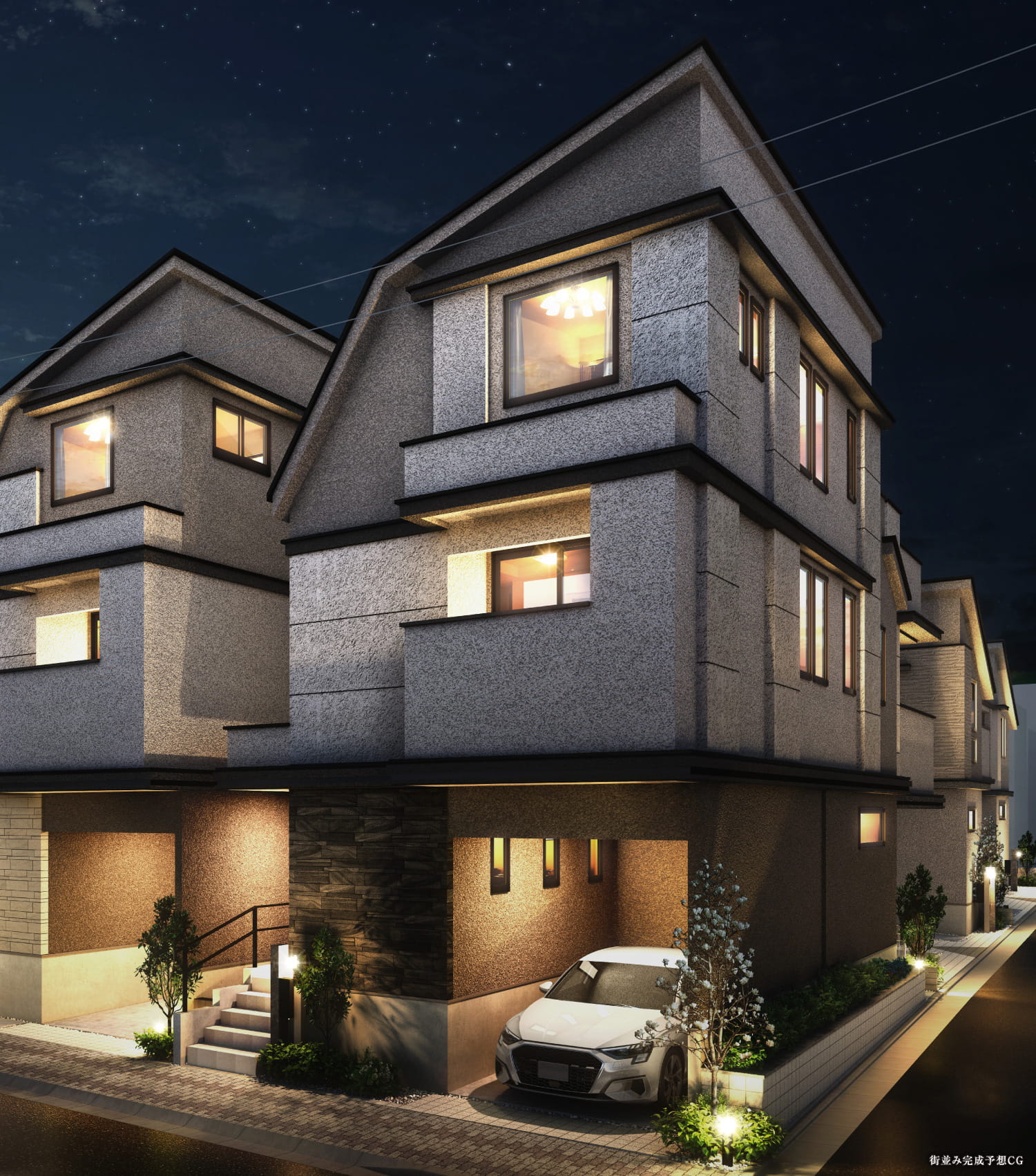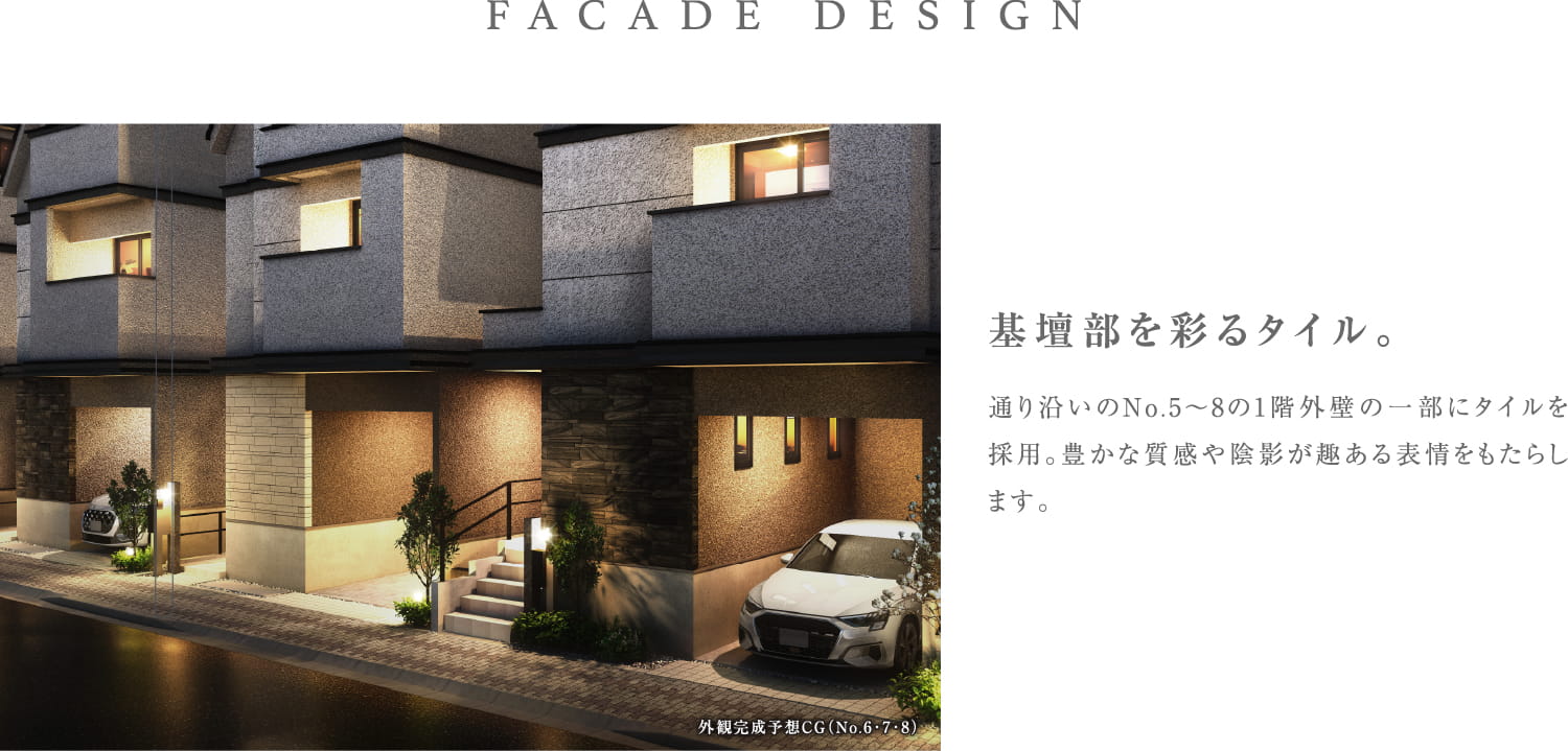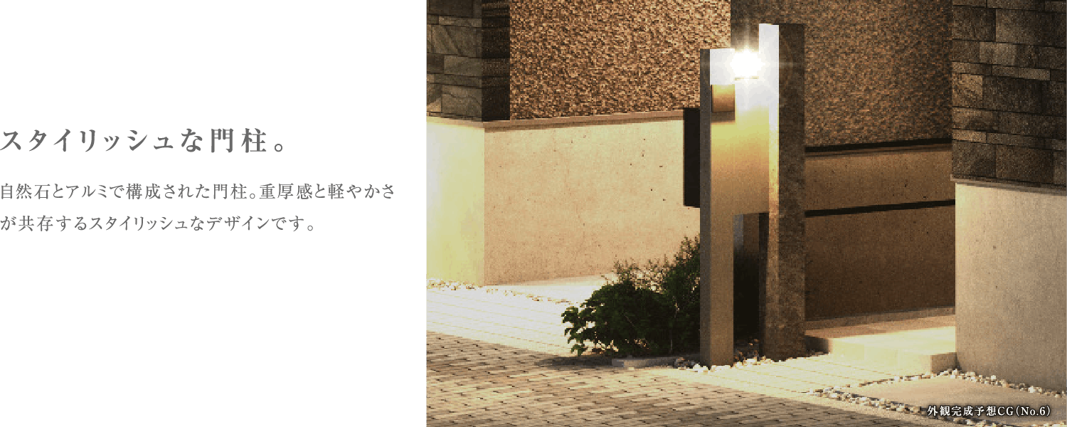 ※掲載の完成予想CGは設計図を基に作成したもので、形状・色等は実際とは異なります。外観形状の細部・設備機器等は表現しておりません。表現されている植栽は竣工から初期の育成期間を経た状態のものを想定して描いております。竣工時は植物の生育を見込んで必要な間隔をとって植えております。家具・調度品等は販売価格には含まれません。予めご了承下さい。