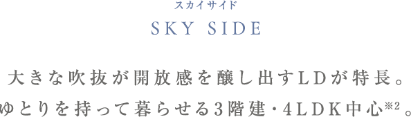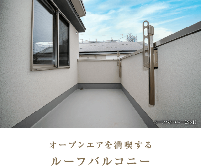 LDに面したワイドなルーフバルコニを一部住戸に実現。空の下でくつろぐ開放的なひとときを演出します。