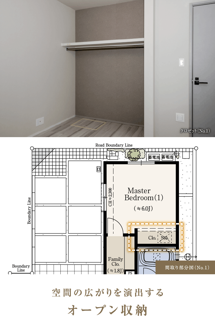 洋室のクロゼット・ウォークインクロゼットは扉のないオープンスタイル。多目的に使えるほか、空間を広く感じさせます。