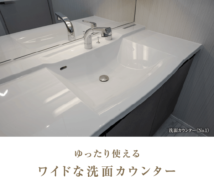 一部住戸にはワイドな洗面カウンターを用意。広々としたスペースで、メイクや身支度をゆとりをもって行えます。