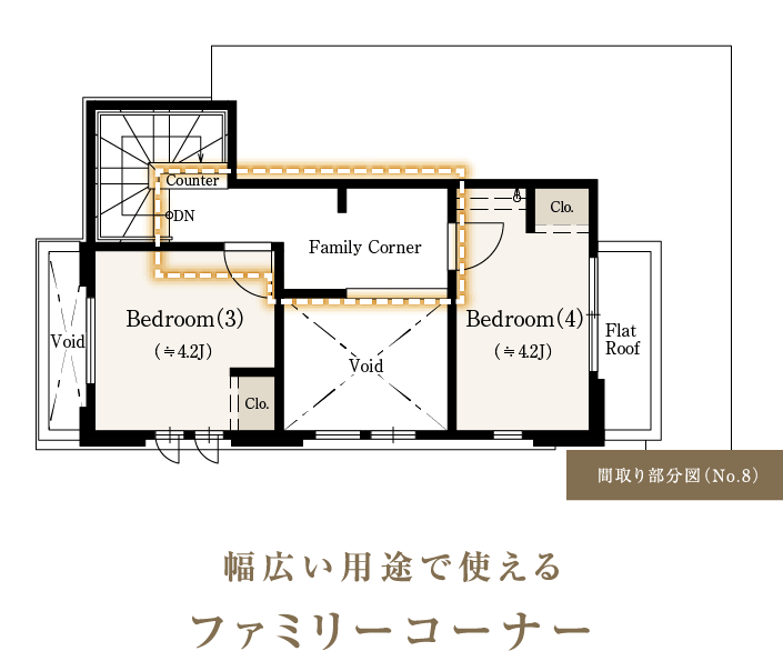 No.7・8の3階には「ファミリーコーナー」を設置。学習スペースや遊び場、書斎など、幅広い用途に活用できます。