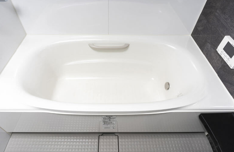 洗い場側に張り出した新形状の“ミナモ浴槽”は、肩やひざまわりがゆったりとし、首あたりや浴槽の縁をつかむ時の腕のあたりの良さが特長です。