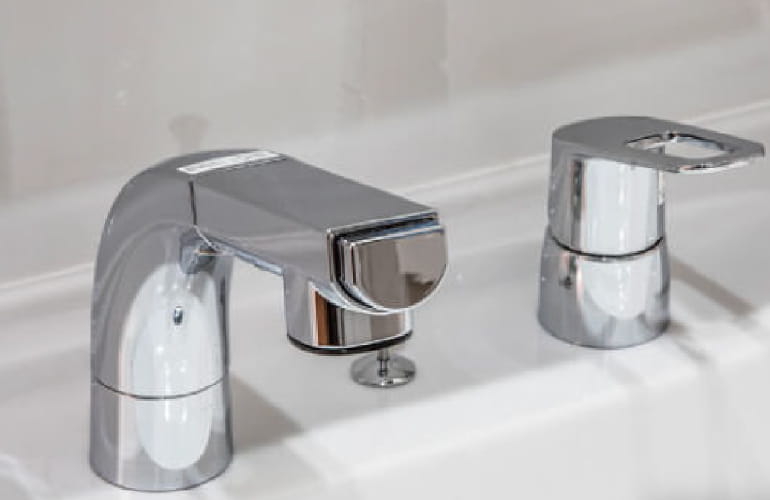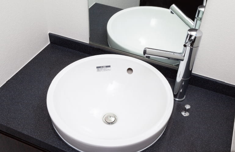 洗面台のシングルレバー水栓は、手前に引き出して使えるので、洗髪やボウルを洗う際に便利です。