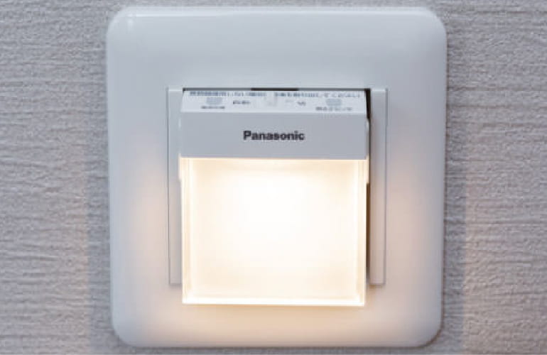 停電すると自動的に点灯し、取り外せば懐中電灯として使える足元保安灯を設置しました。