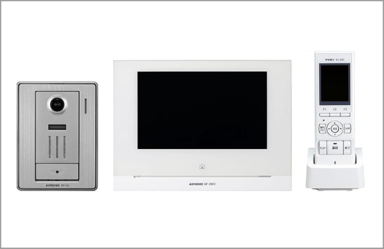 モニターを通して音声と映像で来訪者を確認できる、ハンズフリーの子機付きのTVモニター付きインターホンを採用。