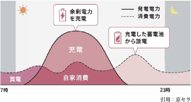 太陽光発電+蓄電池により、発電した電気を有効活用。