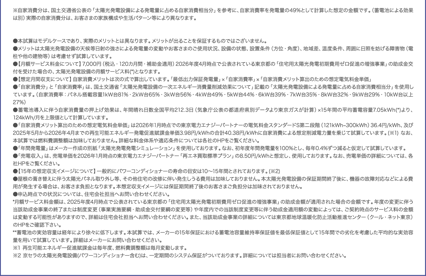 *2:太陽光発電システムのご利用には、東京ガス株式会社との「IGNITUREソーラー(フラットプラン)」サービスのご契約および月額サービス料のお支払いが必要です。詳しくは担当者にお問い合わせください。