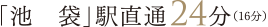 西武池袋線急行利用で、「池袋」駅へ2駅24分(16分)